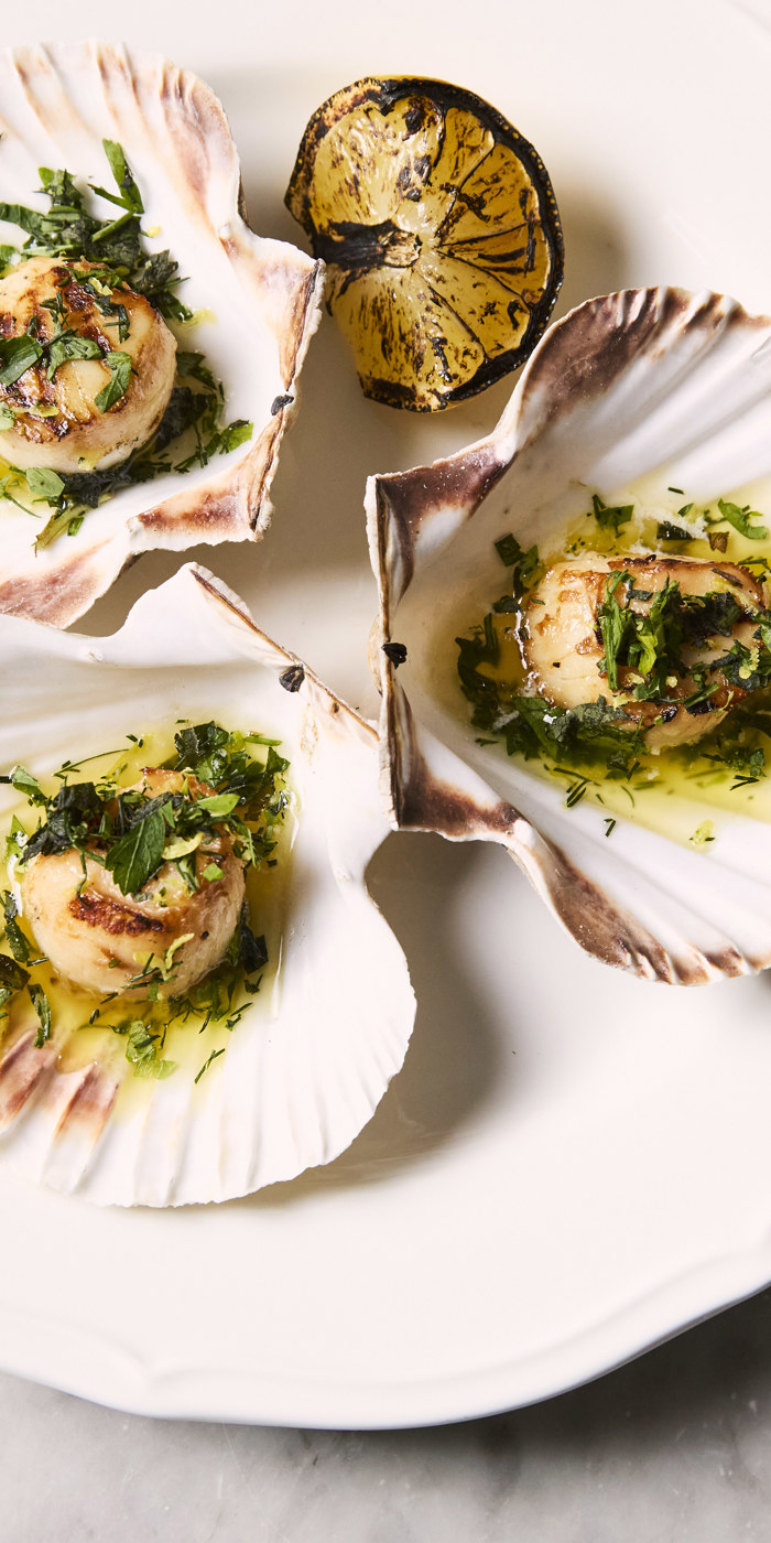 To begin, a nod to the coastal towns of Cornwall with coal roasted scallops, garlic butter and gremolata or crispy Porthilly oysters and Somerset lardo.